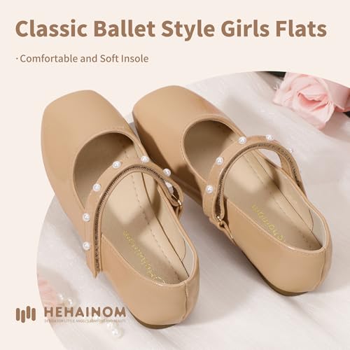 Hehainom Girls Dress Shoes Flower Girl Ballet Flats for Little Big Kids Todder Wedding Party Peals Shoes