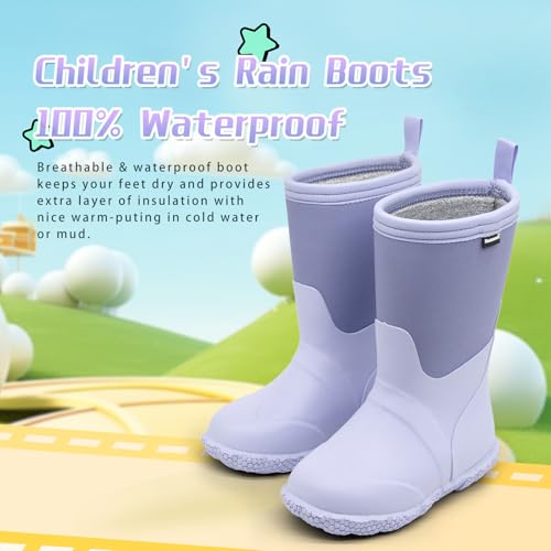 Kaussures Kids Rain Boots for Toddler Girls Boys Waterproof Insulated Rubber Winter Rain Boot for Child