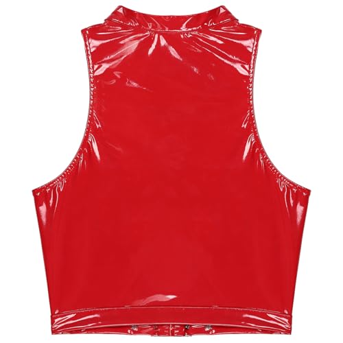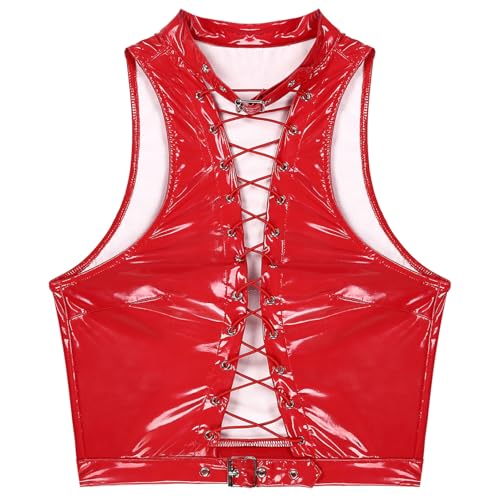 More information about Hularka Women's Patent Leather Lace Up Crop Top Halter Neck Sleeveless Vest Top Shirts Clubwear