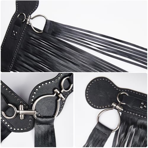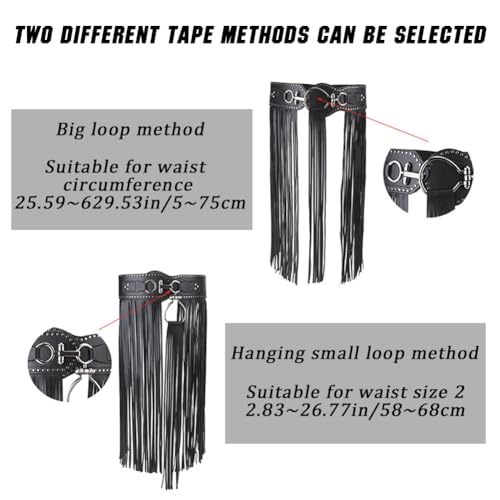 GORGECRAFT PU Leather Tassel Waist Belt Black Vintage Punk Wide Long Fringe Dress Belt Adjustable Women Jeans Skirt Boho Waistband Gothic Body Harness for Halloween Party Dance Cosplay Costume