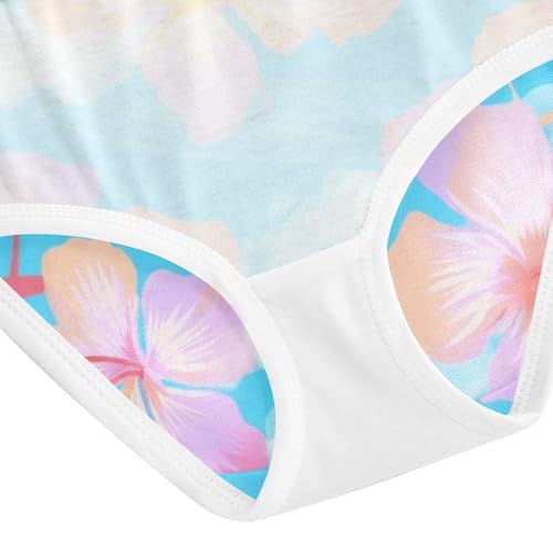 Bright Girls Underwear Toddlers 2t Cotton Panties for Girl Tropical Pastel Hibiscus Flowers Blue Briefs Undies Kids