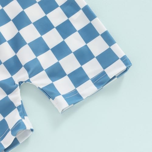 Toddler Baby Boy Girl Swimsuit Checkered One Piece Swimwear Short Sleeve Zipper Rash Guard Beach Bathing Suit