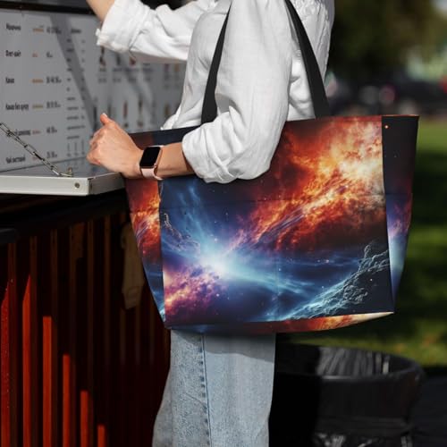 trending ! Beach Bags For Women Large Waterproof Sandproof Beach Tote Bag Lightweight Zipper Carry On Bag Outer Space Stars Pool Bag For Gym Travel Vocation