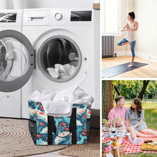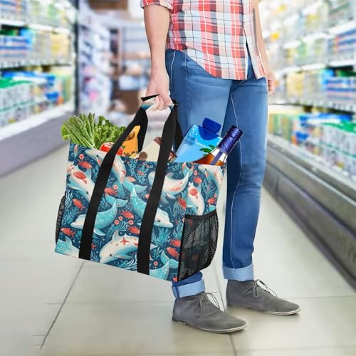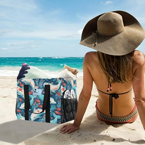 trending ! Nander Dolphin Foldable Tote Bag Waterproof Sandproof Women Beach Bag Handbag Gym Bag Travel Shopping Bag