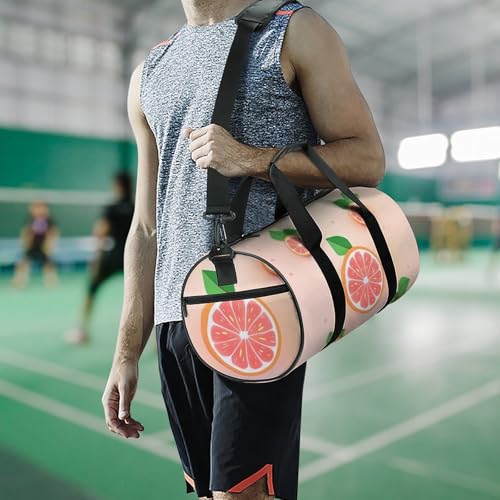 Premium & Durable: Crafted from high-density oxford fabric, this gym duffel bag offers exceptional water resistance, anti-scratch, and stain resistance, ensuring long-lasting performance for all your active adventures.Large Size: Measuring 17.7x 9x 9(L x W x H), the gym bags for men, ideal for travel. The main compartment can hold your gym clothes, towels, toiletries, etc. The side pockets can hold personal items, separate wet and dry areasComfortable & Versatile Carry: Experience effortless transportation with the thickly padded, detachable & adjustable shoulder strap and robust dual carry handles. Switch between shoulder carry or hand carry to suit any journey.Practical Yet Elegant: Cute Grapefruit duffel bag is waterproof on the outside and breathable on the inside. You don't have to worry about losing your belongings even if you carry this sports bag on rainy days. The brightly colored print on the outside makes it easier to identify.Your Ultimate Activity Companion: Perfectly designed for gym, swimming, yoga, weekend trips, travel, and sports. One bag seamlessly transitions from the gym to the pool to the airport. Stop juggling multiple bags! Perfect for everyday use. premium materials and excellent craftsmanship ensure long-lasting durability.