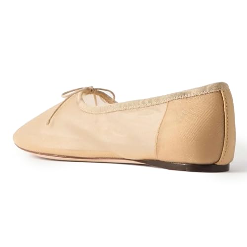UBWDU Mesh Ballet Flats for Women Round Closed Toe Mary Jane Flats Ballerina Shoes with Bow