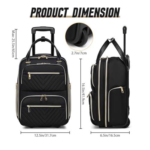 Airline Approved Carry On:Underseat Suitcase measures 16.5 x 12.5 x 6.5 inch, sized to fits in most airline overhead compartments and underseat.American Airlines; Delta Airline; United Airline; Southwest Airline;Hawaiian Airline and Alaska Airline ect. Underseat luggage with wheels complies with all published check-in size restrictions for nearly all major airlines.Solid rubber wheels: Retractable aluminum push-button handle and 2 silent rubber wheels make the briefcase roll effortlessly and more maneuverable.Rollers can easily pass through a variety of complex roads.Equipped with trolley strap on its back which consolidates the luggage on your roller bag.Large separation space: Individually separated oversized spaces with luggage space to hold and secure your clothes, shoes and more, and a waterproof pocket for separate overnight toiletries. It can store 15.6-inch laptops and other electronic products. Can store your books, documents, certificates.premium fabric:Carry on luggage is well made of resilient tear resistant and dirt resistant polyester fabric. Suitcases with a plastic panel corner guard at the bottom and the back cover cushion is designed for strong rubber wheels protection. Every compartment has sturdy zippers.Multi-purpose: Carry on luggage with wheels is suitable for overnight stays, commuting, business trips, impromptu trips and road trips. It can be a great gift for family, friends, partners and spouses if he or she is looking for a practical, high quality, professional work bag.THIS ITEM IS NOT INTENDED FOR USE BY CHILDREN 12 AND UNDER. Perfect for everyday use. High quality materials and excellent craftsmanship ensure long-lasting durability.