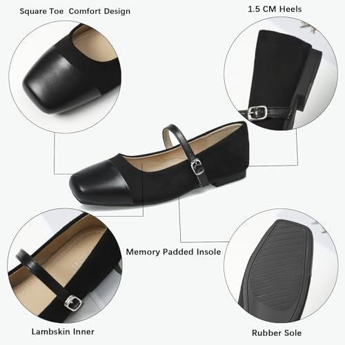 UZUJBAA Women's Suede Mary Jane Flats Buckle Square Cap Toe Ballet Flats Classy Dressy cozy Slip on Flats smooth Work Casual Flat Shoes