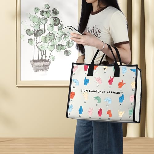 BWWKTOP ASL Teacher Tote Bag American Sign Language Gifts ASL Interpreter Tote Bag Deaf Education Teacher Gifts