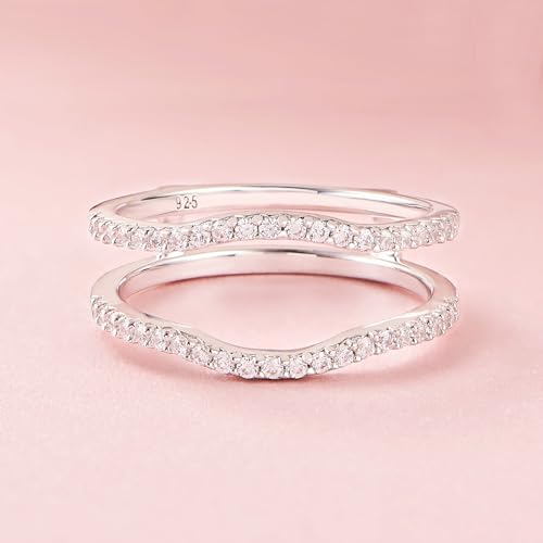 SHELOVES Curved Ring Guard Enhancer Cubic Zirconia Stack Wrap for Engagement Ring 925 Sterling Silver 5-10