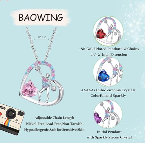 trending ! Birthstone Cheerleader Necklace Gifts for Girls Heart Rainbow Cheerleading Cheering Jewelry Pendant Sport Cheer Birthday Gifts for Kids Little Girl Daughter Granddaughter