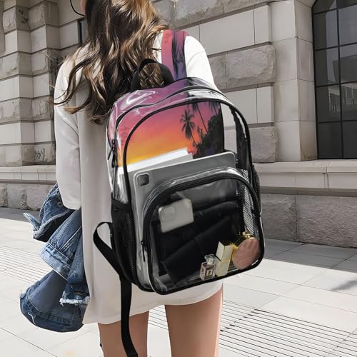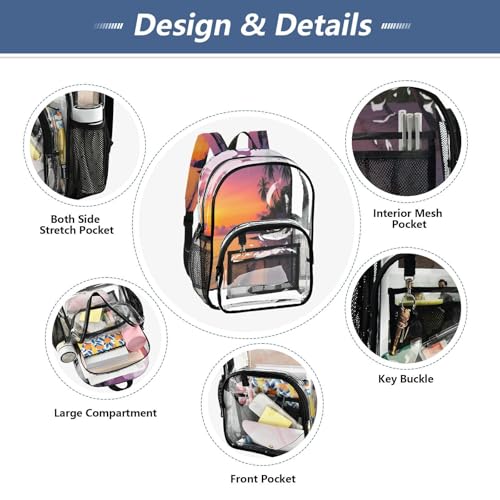 Tropical Beach Clear Backpack - Stadium Approved Large 15.7-inch Waterproof Transparent Bag for Sports, Concerts, Work, Travel#59