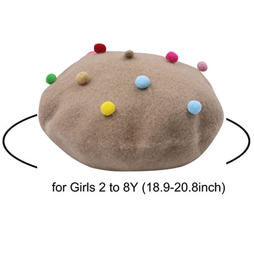 RARITYUS Fashion Cute Wool French Artist Beret Hat cozy Beanie Cap Headwear with Small Rainbow Pom Pom for Women Girls