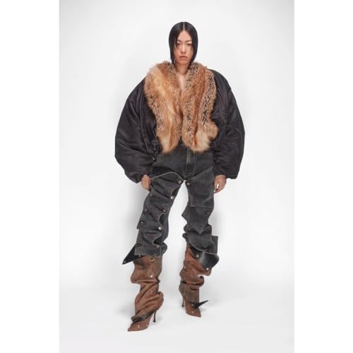 More information about Yishaweiqi Women's Denim Slouch Ruched Knee High Boots Back Zip Stiletto Heel Boots Pointed Toe Studs Fashion Boots