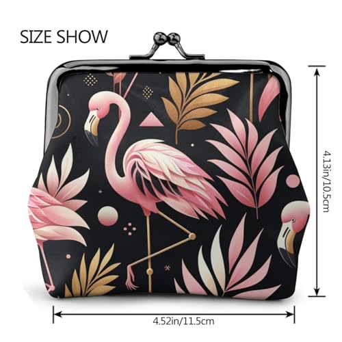 trending ! Pu Leather Buckle Coin Purse Black-Leaf-Flamingos Girls Kiss-Lock Change Purse Wallets