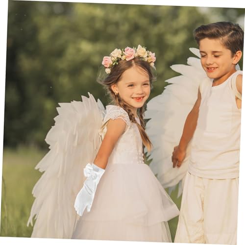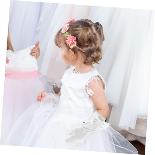 LIFKOME 1pair Elegant Ladies Butterfly Satin Gloves White Lace Gloves for Women Dressy Boys and Girls