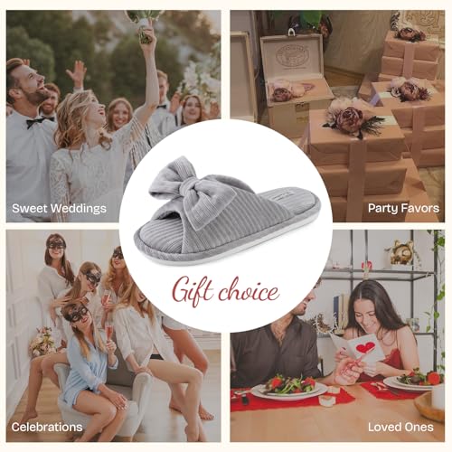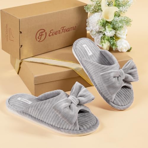 EverFoams Women's Open-Toe Bow Slippers with Memory Foam Indoor House Non-Slip Sole