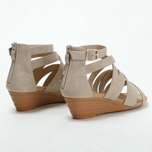 ZDLJYL Women's Summer Comfy Mid High Heel Shoes Open Toe Strappy Wedge Sandals Zip Back Cute Comfy Wedges Heels Beach Sandal