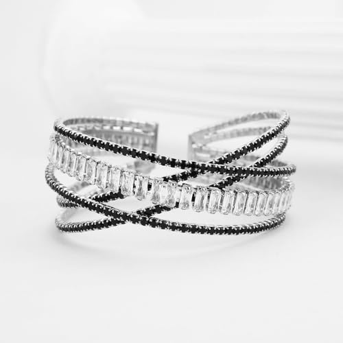 HZMAN Crystal Rhinestone Cuff Bracelet for Women Dainty MultiLayer Bracelet 5 Rows Layered Bracelets Jewelry for Prom Party Wedding