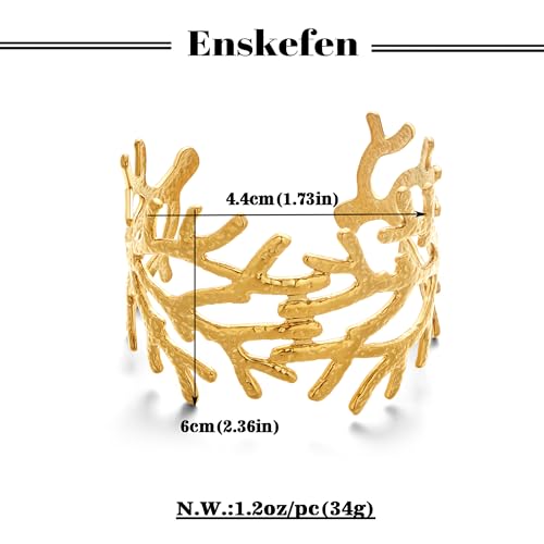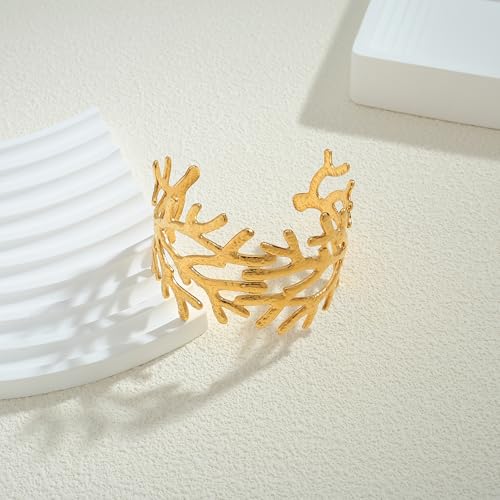 Material: Stainless SteelMetal type: Stainless SteelClasp type: No clasp typeChain type: SolidGem type: No gemstoneUnique Design: Featuring coral reefs and an ocean style, this chunky coral bracelet has an intricate and irregular design to add a natural elegance to your summer outfit.Adjustable Open Cuff Bracelet: This gold coral reef open cuff bracelet is designed for flexibility, allowing for easy adjustment to fit most wrist sizes.Statement Hammer Coral Bracelet: Gold cuff bracelet with textured hammer and irregular Marine coral effect, eye-catching statement piece.Versatile Summer Style: Whether it's for everyday wear, a beach vacation, or a summer party, this irregular beach statement gold bracelet is a sleek accessory that will brighten up any outfit and show off your unique style without any effort.Perfect Choice for Ocean Lovers: This summer beach bracelet comes with a delicate velvet pouch, a thoughtful gift for birthdays, holidays, or special occasions, this gold coral cuff bracelet for women is the perfect way to celebrate someone special while embracing the allure of the sea. Perfect for everyday use. premium materials and excellent craftsmanship ensure long-lasting durability.
