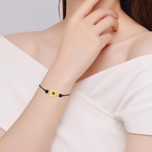 20PCS Handmade Sunflower Bracelets Adjustable Boho Sunflower Daisy Charm Bracelets Braided Rope Sunflower Bracelets Pinky Promise Friendship Bracelet for Couples Women