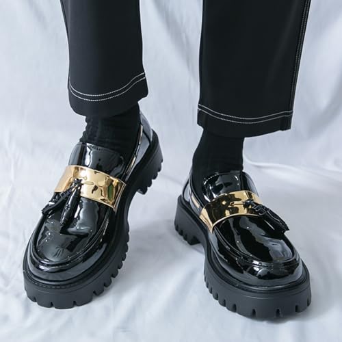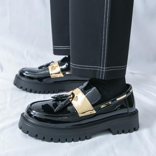 trending ! Men's Patent Leather Slip-On Platform Tassels Loafer Shoes Fashion Round Toe Low Top Lug Sole Non-Slip Business Dress Shoes for Party Business Dating Prom