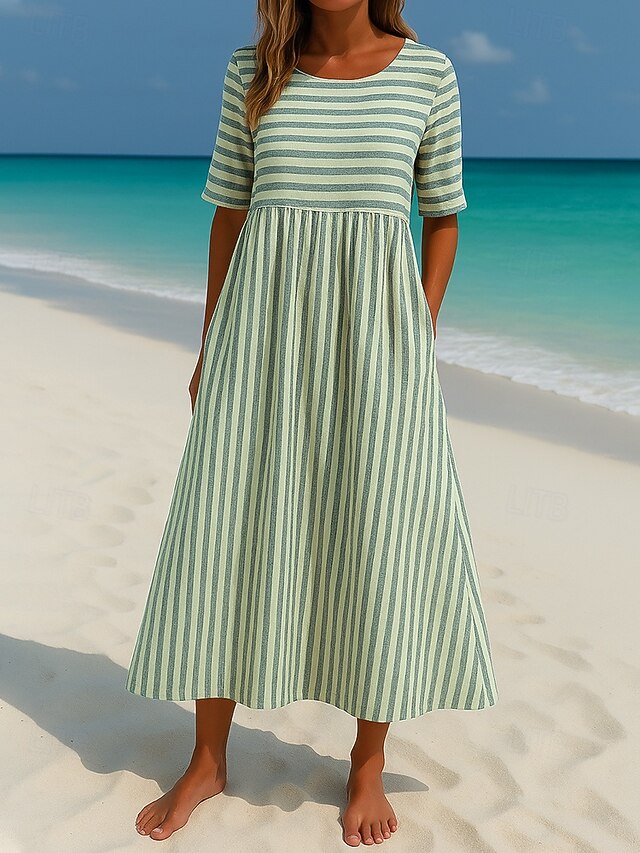 This Women's Maxi Dress Sundress Casual Daily Fall Dress Loose Fit Striped Short Sleeve Crew Neck Sky Blue Camel Purple Green Fall combines elegant design with practical functionality. Every detail has been carefully considered to ensure you get the finest possible experience. The premium construction means this product will serve you well for years to come.