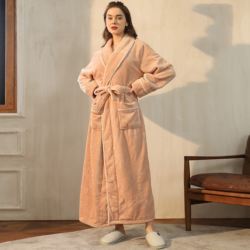 More information about Women's Pajamas Bathrobe Robes Gown Nighty 1PC Pure Color snug Plush Casual Party Home Daily Fleece Terry V Wire Long Sleeve up-to-date Style Belt Included Pocket Fall Winter Home Outfits