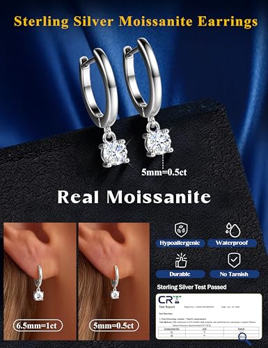 More information about Moissanite Earrings,S925 Sterling Silver Moissanite Hoop 1.0ct-2.0ct D Color Brilliant Earring For Women Drop Dangle Earring Moissanit e Leverback for Women Gift