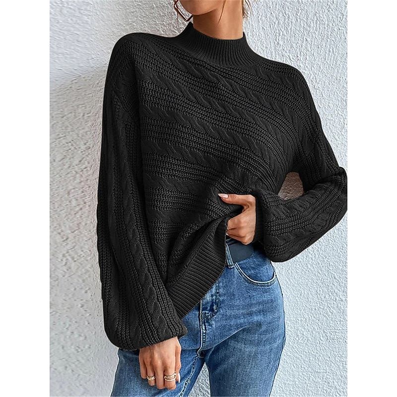 More information about Women's Sweater Pullover Sweater Jumper Casual gentle Pure Color Cable Turtleneck Knitted Long Sleeve Regular Tops Knit Outdoor Daily Weekend Black Green Fall Winter