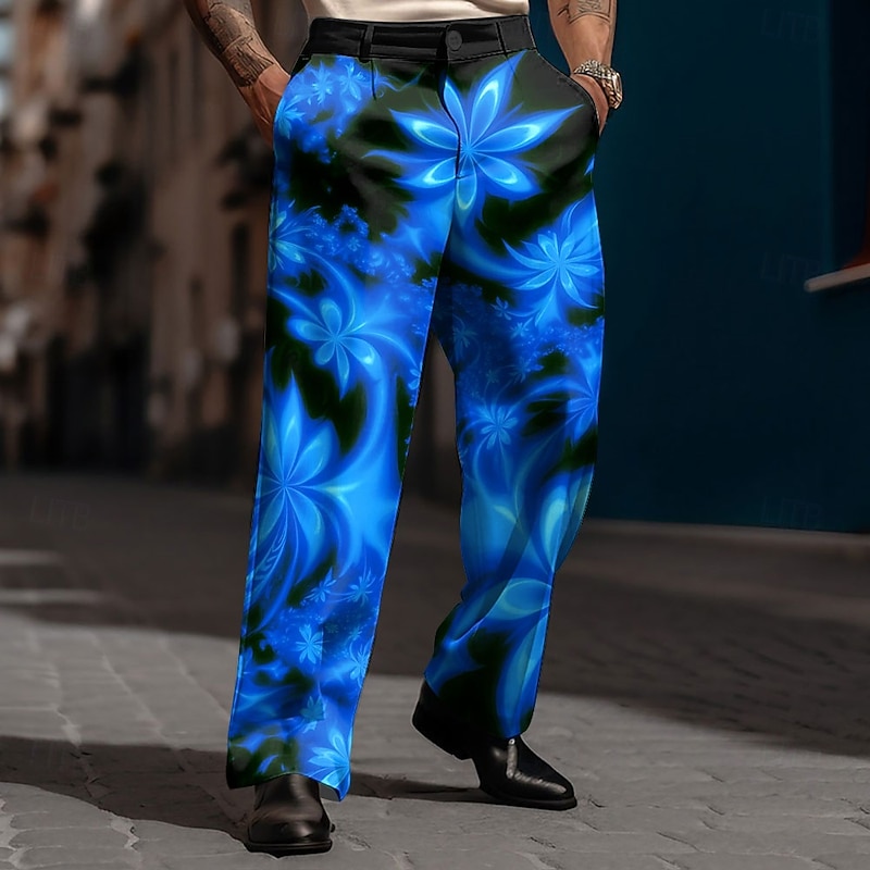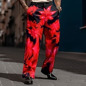 trending ! Men's Maple Leaf Dress Pants Trousers Suit Pants Mid Waist Casual Dailywear Holiday Relaxed Fit Flat Front Dress Pants with Side Pockets Spring Fall 3D Print Black / Green Black / Red Black / Orange