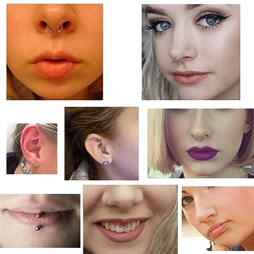 • MULTIPLE APPLICATION: These Piercing Jewelry Can be Use as Lip Rings, Labret Jewelry, Medusa Piercing Jewelry, Monroe Piercing Jewelry, Ashley Piercing Lip Jewelry, Smiley Piercing Jewelry, Nose Septum Rings, Tragus Earring, Triple Helix Earrings, Daith Piercing Jewelry, Eyebrow Rings and Other Body Piercing Jewelry.