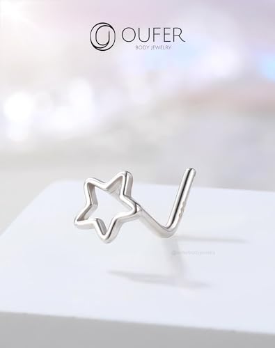 trending ! OUFER 925 Sterling Silver Nose Rings, Nose Studs For Women, Cute Nose Nostril Piercing Jewelry, L-Shaped 20G Silver Nose Rings Studs