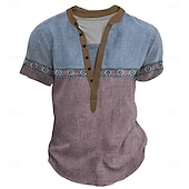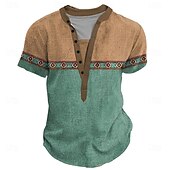 More information about Men's Graphic Geometric Tribal Henley Shirt Short Sleeve 3D Print Fashion Designer Ethnic Street Casual Daily Summer Light Blue Light Green Light Purple Stand Collar Henley Henley T-Shirt