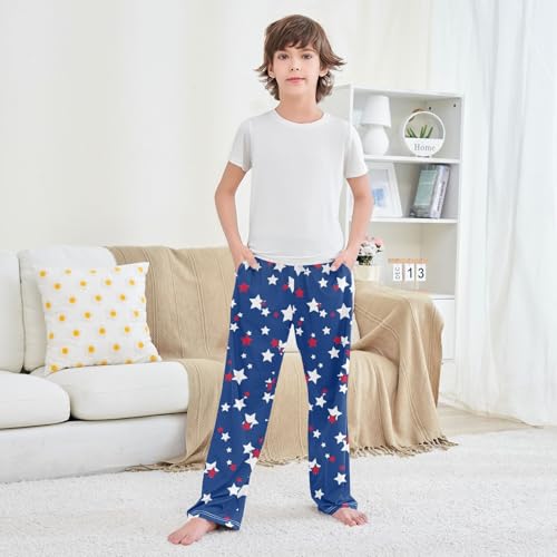More information about ZZXXB American Flag Stars Print Boys Long Pants plush Trousers Elastic Waist Kids Lounge Bottoms with Pockets S-XL