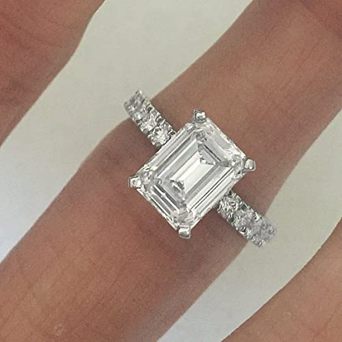 BeBold 4ct Emerald Cut Simulated Diamond CZ Engagement Ring for Women Round Accents White Gold Plated