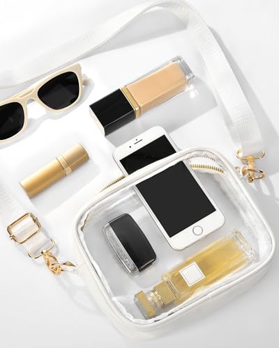 • Adjustable Dual Strap Feature: Customize your carrying style with our clear bag. It comes with two sleek options—a wide strap and a golden metal strap, both removable and adjustable up to 49 inches. Style it to your needs, whether as a chic shoulder bag, crossbody bag, handbag or a trendy fanny pack