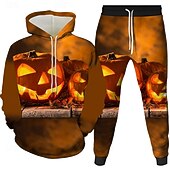 More information about Halloween Men's Halloween pumpkin 2pcs 3D Sweatshirt Sets Tracksuit Hoodie Sweatshirt Long Sleeve Long pants Hooded Casual Daily Athleisure Festival Outfit 3D Print Spring Fall Winter Robin's Egg