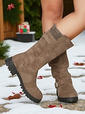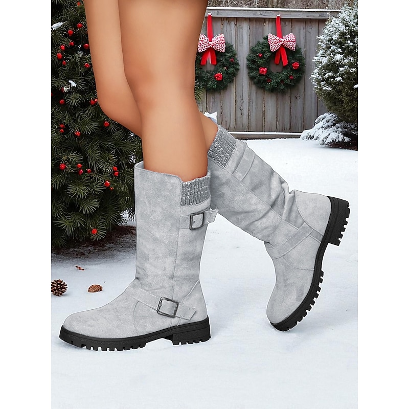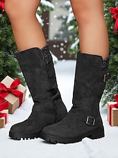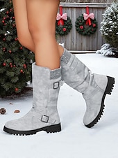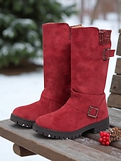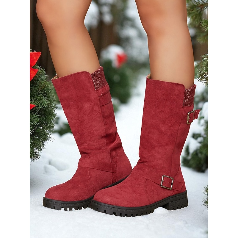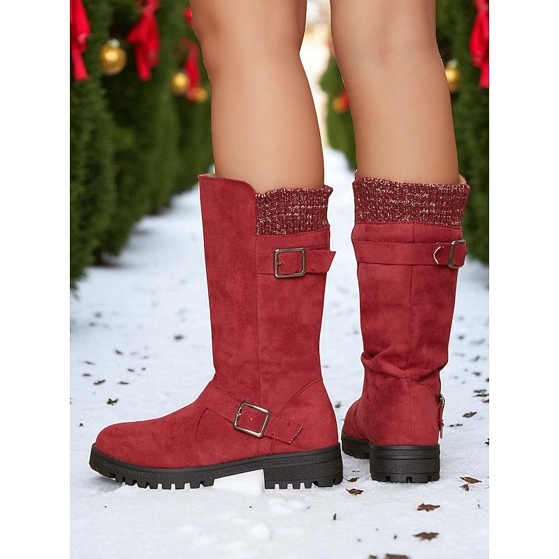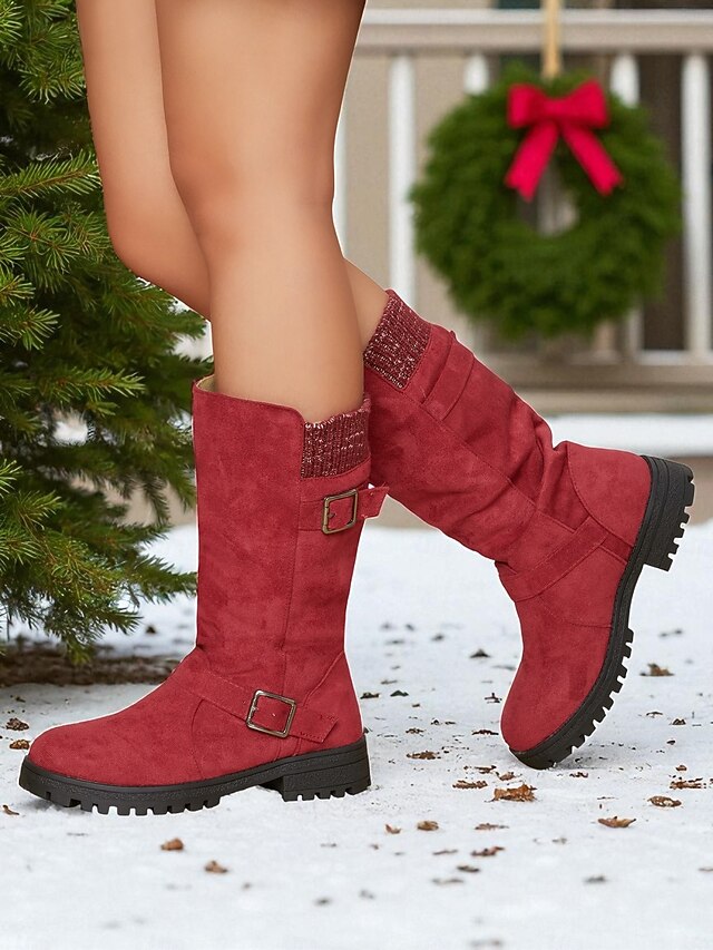 $42.99 - Women's Red Faux Suede Mid-Calf Boots with Adjustable Buckles and Non-Slip Sole, Casual Comfort Knit Boots for Christmas & Daily Wear 2025. Shop for cheap Women's Christmas Shoes online? Buy at lightinthebox.com on sale today!