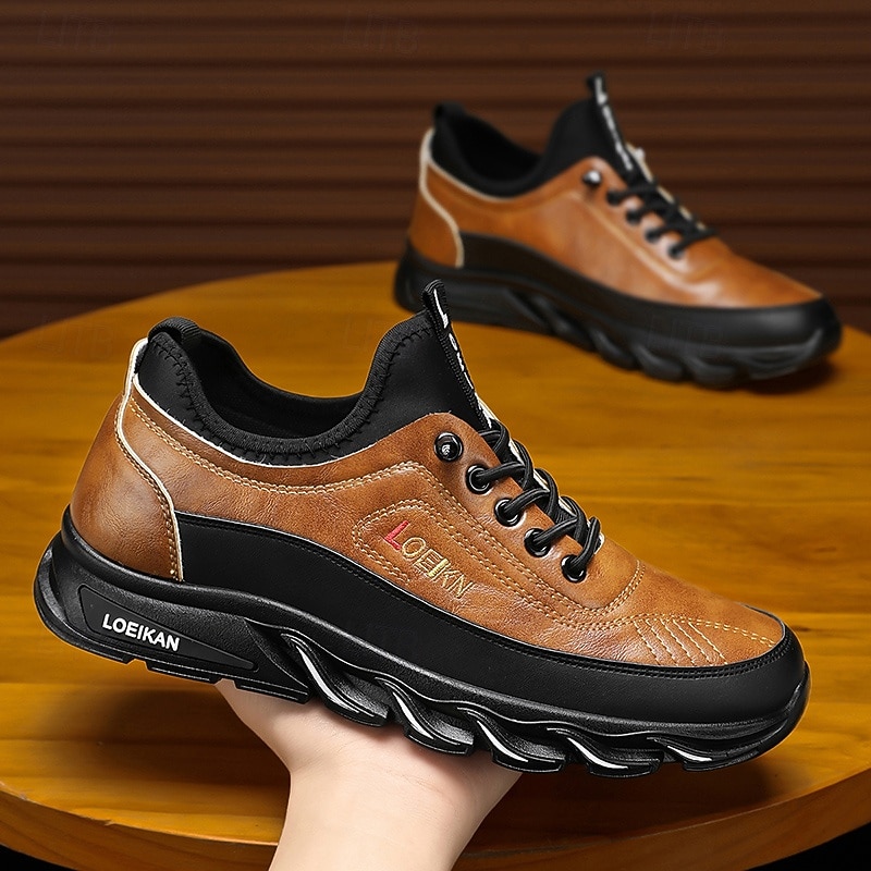 trending ! Men's Rugged Outdoor Shoes in Tan & Black, rugged Faux Leather Construction with Zigzag Sole for Enhanced Grip