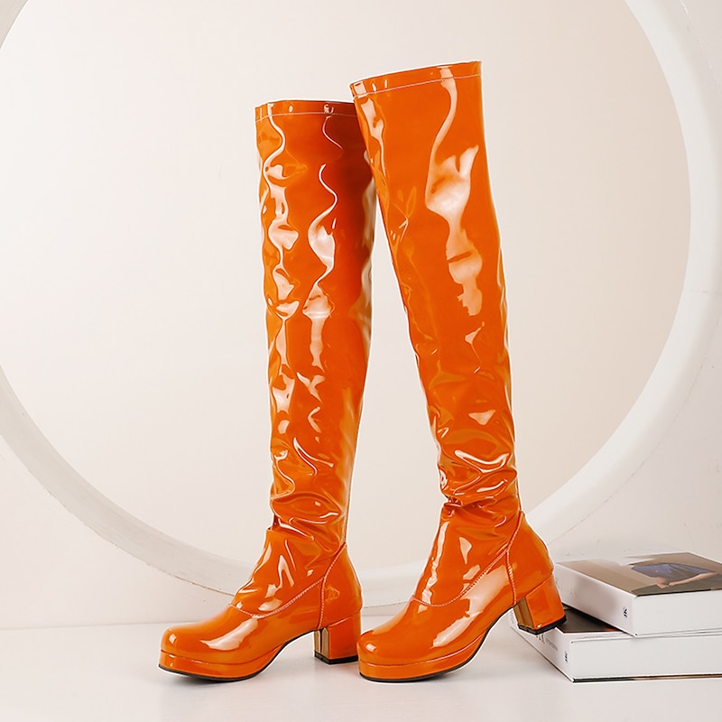 Highlights 1. Step back in time with these phenomenal Women's Gogo Boots from our collection. 2. Over The Knee Boots with chunky heels and round toes bring back the 1960's vibe. 3. Add the finishing touch to your go-go dancer costume with these funky boots that are sure to make you the life of the party. 4. Whether you're dressing as a superhero, pro wrestler, or disco dancer, these high-quality knee-high boots will make you stand out in a crowd. 5. snug and unforgettable, order your pair of attention-getting boots today. 6. These boots feature a block heel for added comfort.