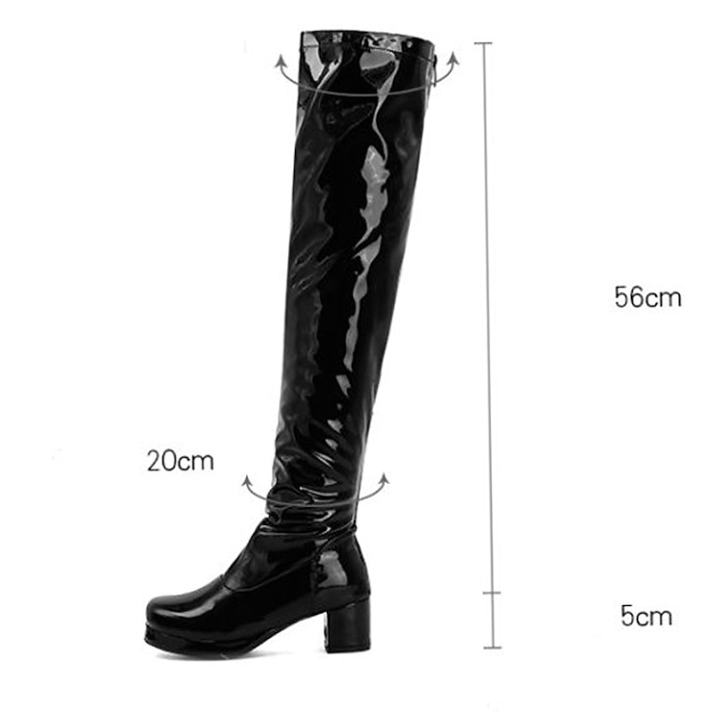 More information about Women's Black Patent Leather Over-the-Knee Boots with Chunky Heel, sophisticated and Sleek for Night Out and Party Wear