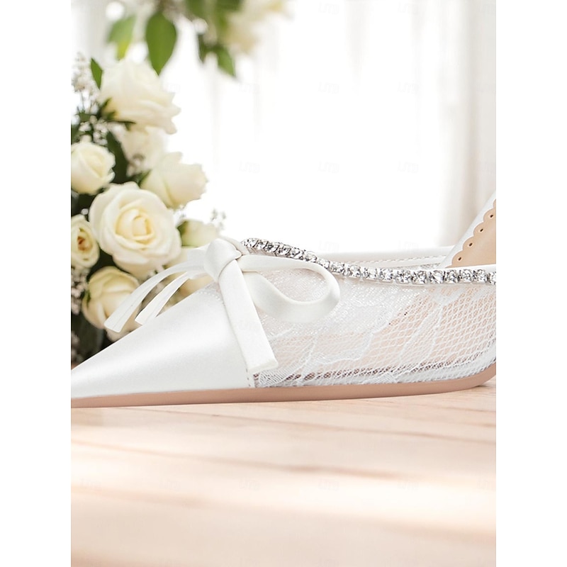 Why Choose Women's White Satin Lace High Heels, Pointed-Toe Wedding Pumps with Rhinestones and Bow, Elegant Bridal Shoes for Formal Ceremony?