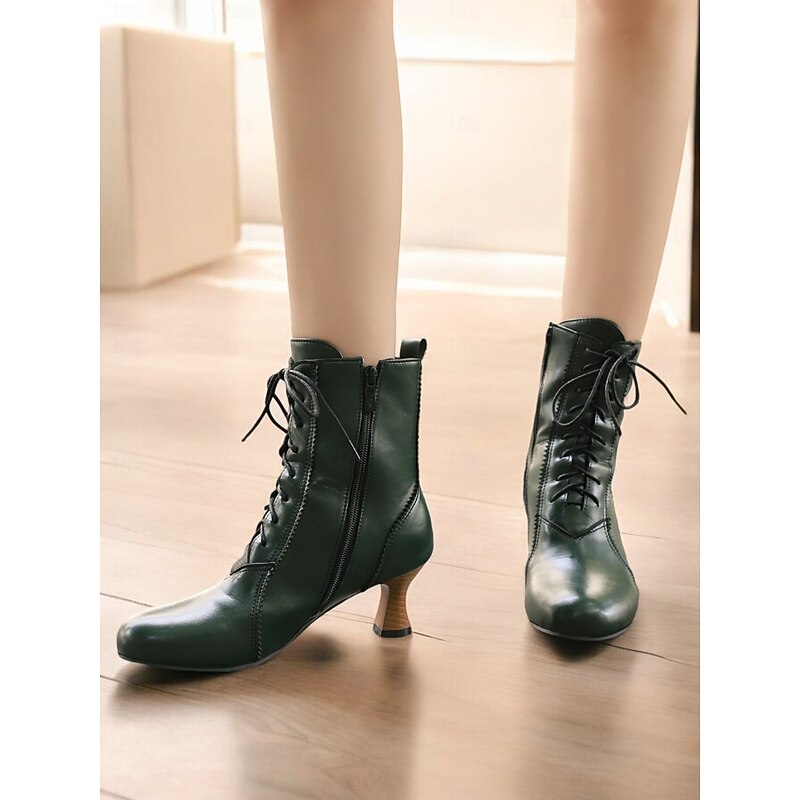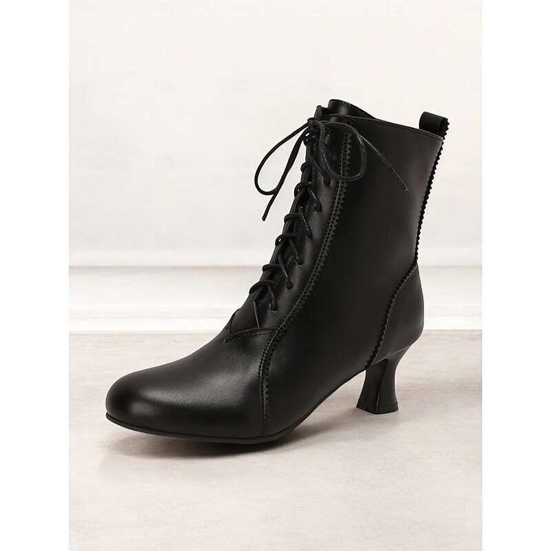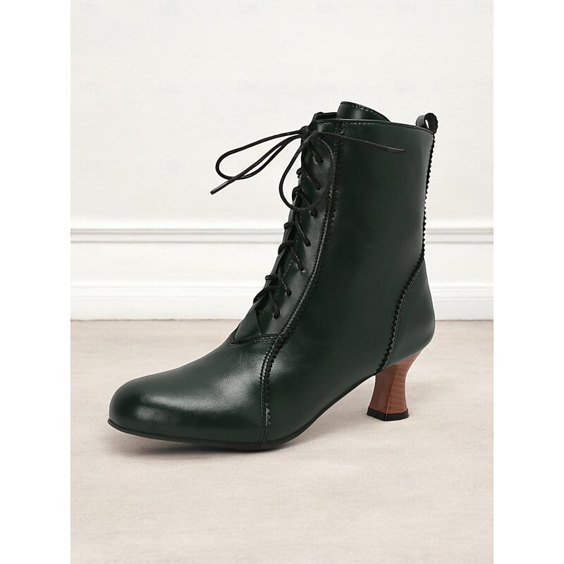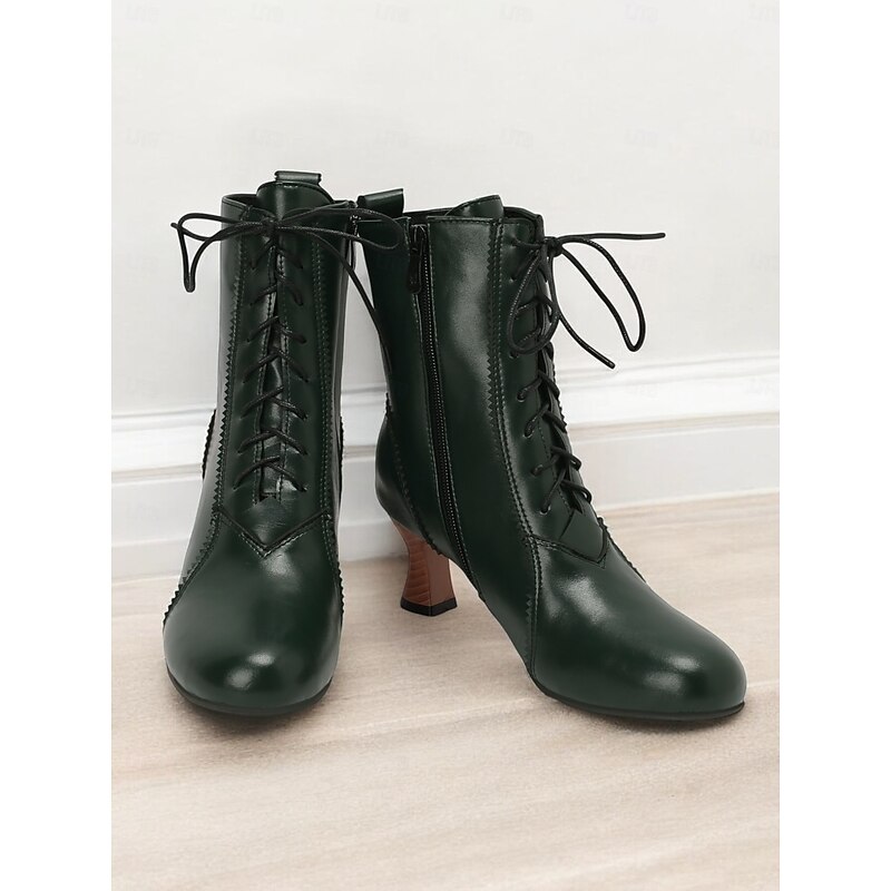 Highlights [Material and Craftsmanship] : The upper of these Victorian-style ankle boots is made from durable PU materials, ensuring resilience and comfort throughout any season. The elegant lace-up design adds a vintage charm while the decorative side zipper provides convenience without compromising style. [Shape and Fit] : These boots boast a sleek, ankle-length silhouette with a mid-block heel that offers stability and ease of movement. The round toe design accommodates natural toe positioning, enhancing comfort for both casual and formal wear. [Design Highlights] : The boots feature intricate stitching along the seams, creating a refined, sophisticated look. The combination of lace-up closures with a convenient side zipper offers both iconic appeal and practicality, allowing for easy wear. [Occasions] : Perfect for daily wear or work settings, these versatile boots transition seamlessly from casual to formal occasions. Whether you are dressing up for a vintage-inspired event or need reliable footwear for a day at the office, these boots are an exceptional choice. [Size Information] : Available in a wide range of sizes from US5.5 to US10.5, these boots offer a standard fit, allowing you to select your usual size with confidence. The variety of colors available, including brown, white, black, red, and dark green, lets you choose the perfect pair to complement any outfit. Perfect for everyday use. premium materials and excellent craftsmanship ensure long-lasting durability.