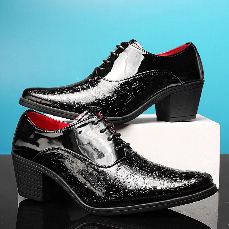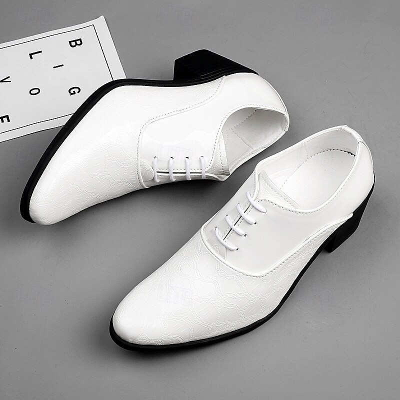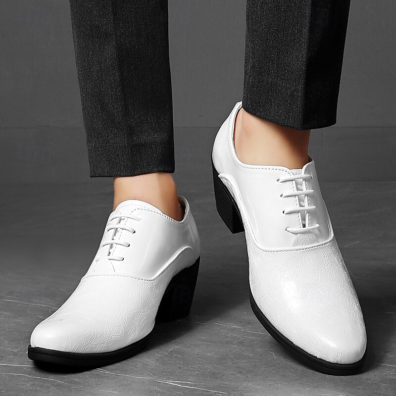 trending ! Men's White Patent Faux Leather Lace-Up Oxford Shoes – Vintage Crocodile Embossed Block Heel Dress Shoes for Weddings, Parties & Formal Events