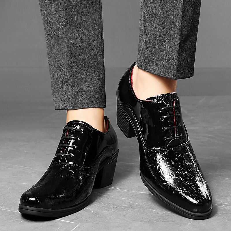 Highlights [Fabric] : Crafted from high-quality PU material, these men's oxfords offer a polished look suitable for the fall and winter seasons. The upper material provides durability and a sleek finish, ensuring a sophisticated appearance. [Fit] : Featuring a classic round toe shape, these shoes deliver a comfortable fit ideal for business and formal settings. The lace-up closure ensures a secure and adjustable fit, accommodating various foot shapes. [Design Highlights] : These oxfords are designed with a height-increasing function for an added lift and enhanced posture. The British style, complemented by subtle polka dot patterns, adds a current twist to traditional dress shoes. [Occasions] : Perfect for Christmas parties, evening gatherings, and other special events, these shoes are a versatile addition to any wardrobe. Their sleek design and modern details make them suitable for both festive occasions and professional meetings. [Size Range] : Available in a range of sizes from US6-11, these shoes cater to different foot sizes, ensuring a suitable option for most individuals seeking elegance and comfort.