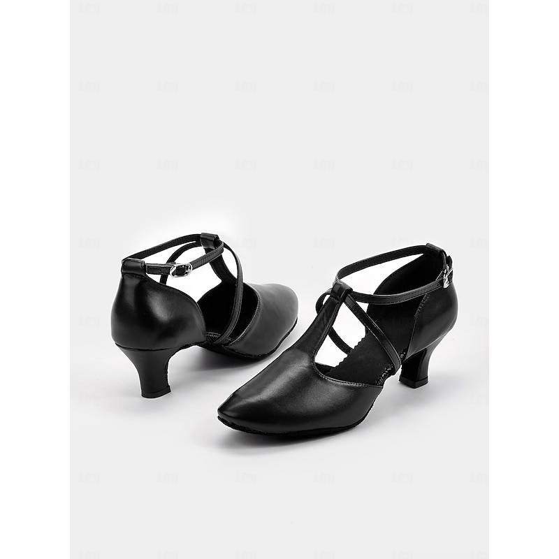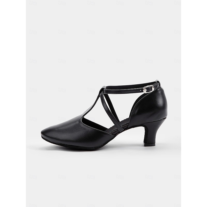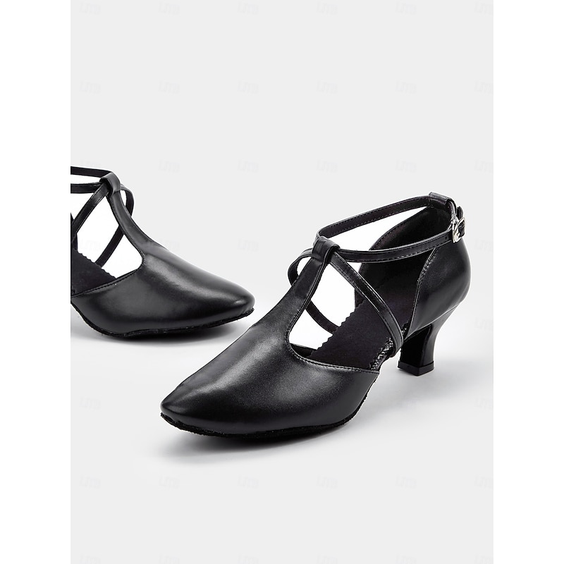 More information about Black Faux Leather Dance Shoes with Cross Strap Design – Women's pleasant Ballroom and Latin Dance Heels
