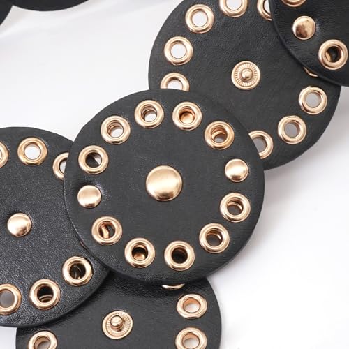 trending ! Disc Belt Women's Western Hollow Out Round Leather Belt Boho Waist Belt for Dress Jeans