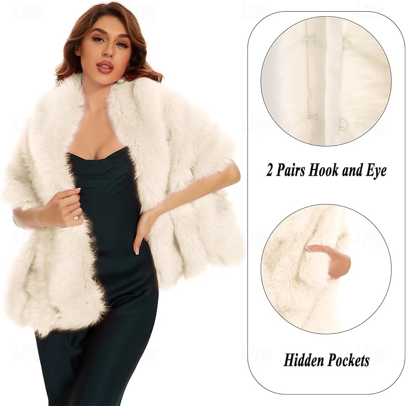 This Women's Faux Fur Shawl Luxury Fur Shawls and Wraps for Evening Dresses Bridal Faux Fur Wrap for Bride and Bridesmaid combines elegant design with practical functionality. Every detail has been carefully considered to ensure you get the supreme possible experience. The first-class construction means this product will serve you well for years to come.