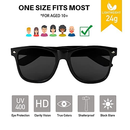 Origin: ImportedRETRO STYLE FOR ADULTS: The colored sunglasses feature a iconic vintage style and will be ideal for unisex ! Available in many trendy colors. These black retro party sunglasses will give a fun 80s touch to any outfit!UV400 PROTECTION:The UV400 lenses of cheap sunglasses offer UVA and UVB protection from the sun, helping your family and friend make the most of their outdoor moments in safety.QUALITY FRAME: Neon glasses made from thick shatterproof plastic with a glossy finish, blue frames are lightweight and feature a comfortable fit and can be used for a long time.MULTIPLE OCCASIONS:colorful sunglasses bulk great for men and women daily use, gifting, give-away goodie bags and wholesale to retail.Fun sunglasses are suitable for pool and beach parties, summer parties, bachelorette party, wedding, birthday, carnival, walking, shopping, vacation, taking photos, fun events or party favors.100% SATISFACTION GUARANTEE: Customer satisfaction is our priority and we promise 100% satisfaction. If for any reason you are not satisfied with our sunglasses pack. Perfect for everyday use. premium materials and excellent craftsmanship ensure long-lasting durability.